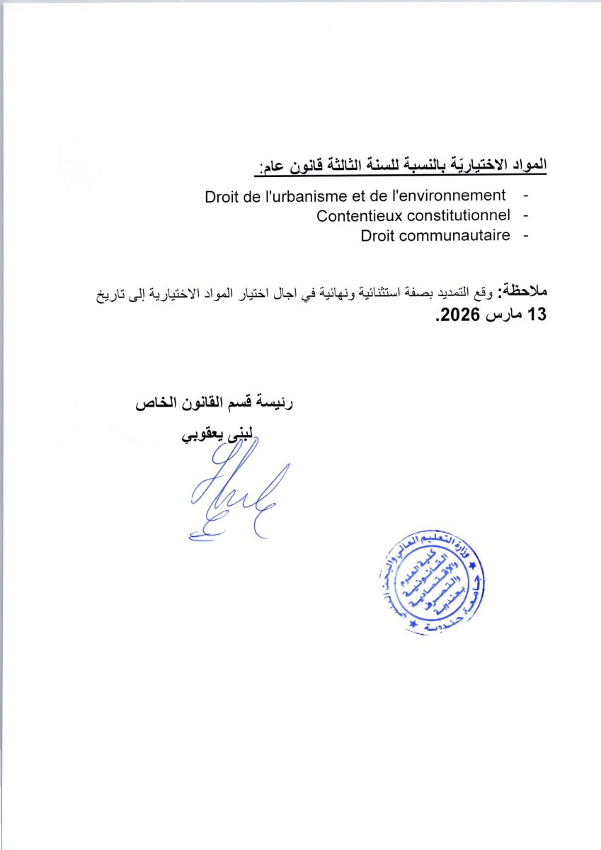 اعلام لطلبة الإجازة في القانون تمديد في اجال اختيار المواد الإختيارية
