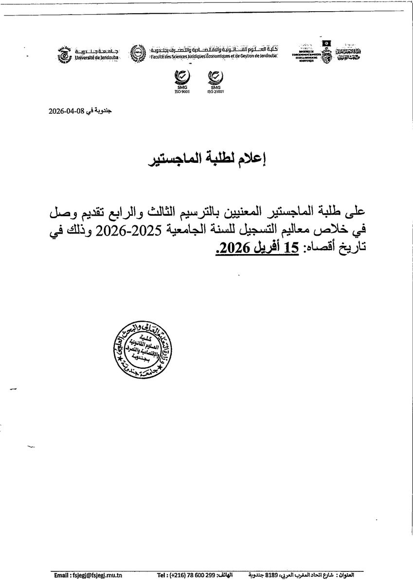 اعلام الى طلبة لماجستير