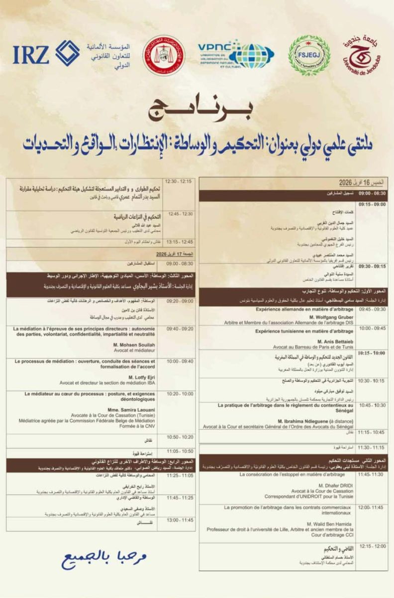 ملتقى علمي دولي بعنوان : التحكيم و الوساطة : الإنتظارات , الواقع و التحديات