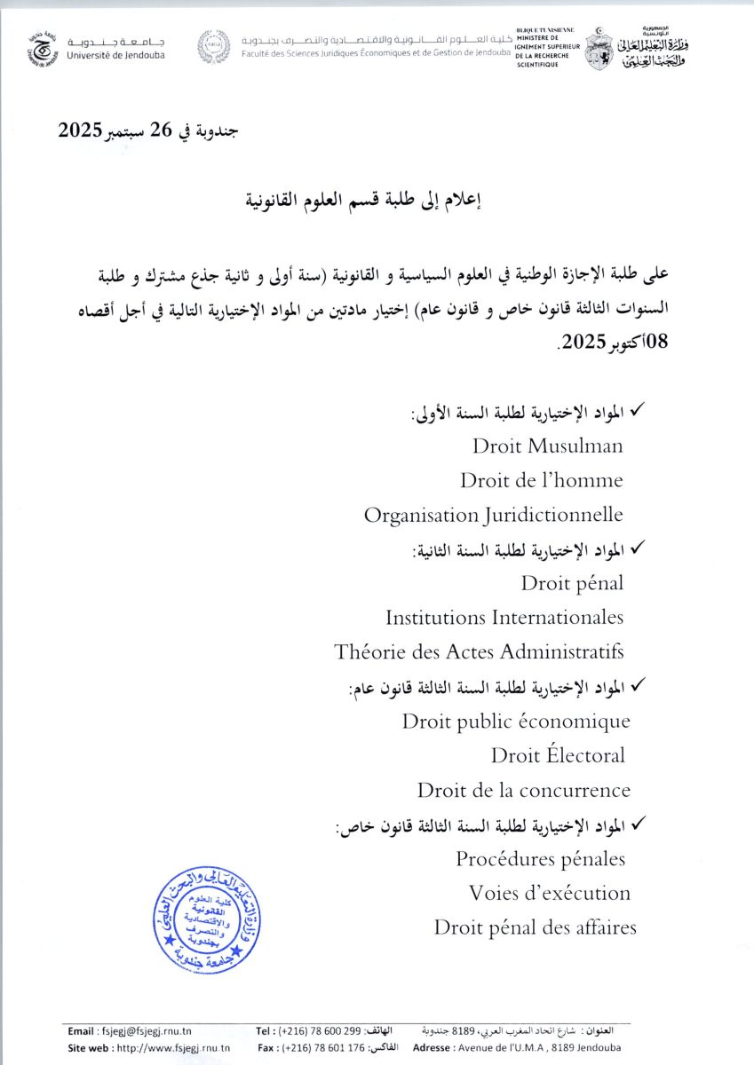 Choix des matières optionnelles pour les étudiants de 1LD - 2LD - 3 LDPR - 3LDPU