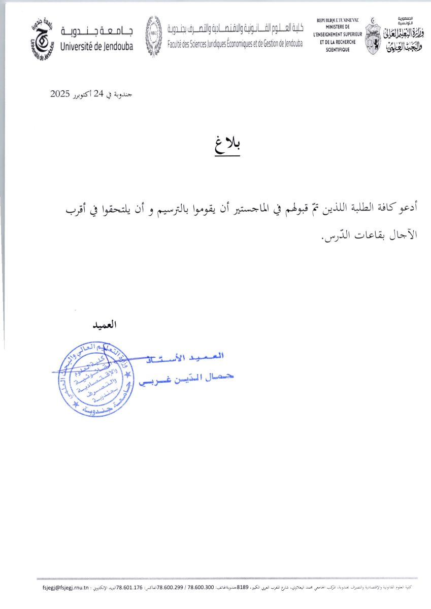 بلاغ الى كافة الطلبة