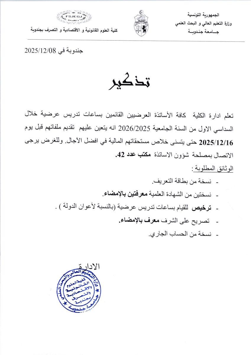تذكير : اعلام خاص بالأساتذة العرضيين