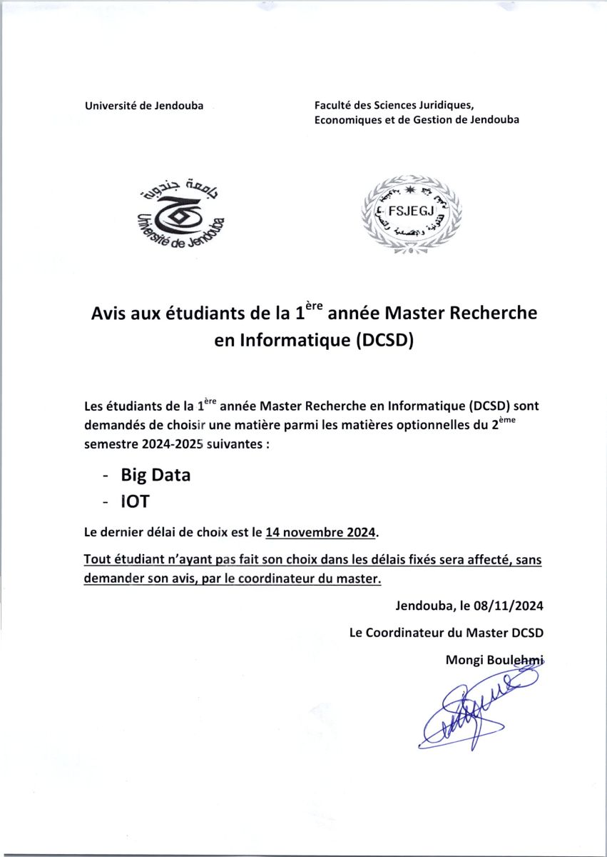 Ministère de l’Enseignement Supérieur et de la Recherche Scientifique