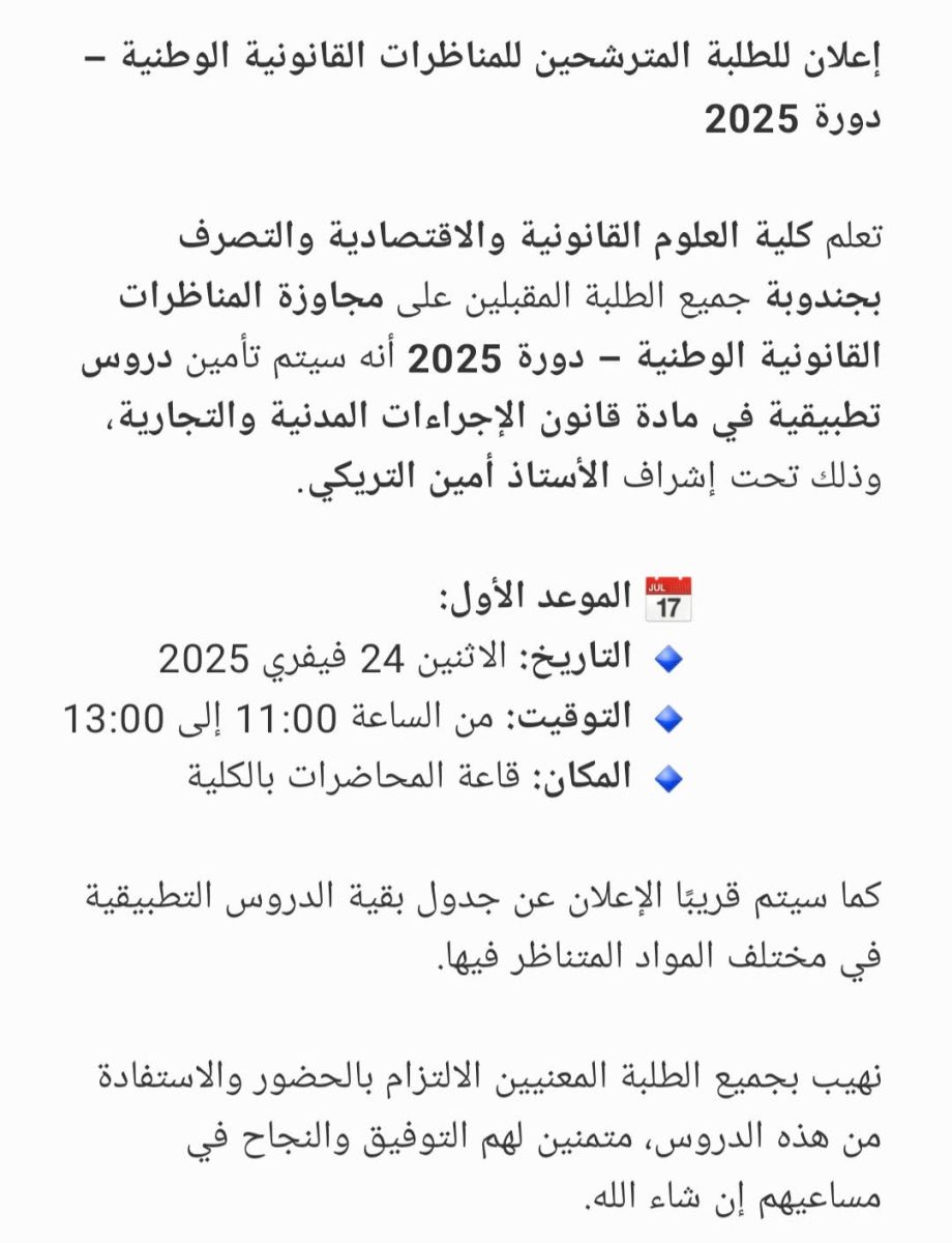 دورة الإعداد للمناظرات القانونية بالبلاد التونسية (حصة رقم 2)