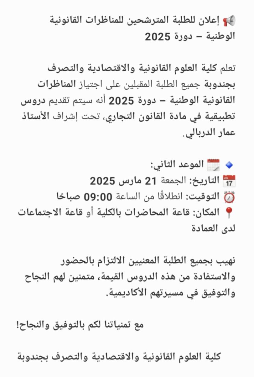 دورة الإعداد للمناظرات القانونية بالبلاد التونسية (حصة رقم 6)