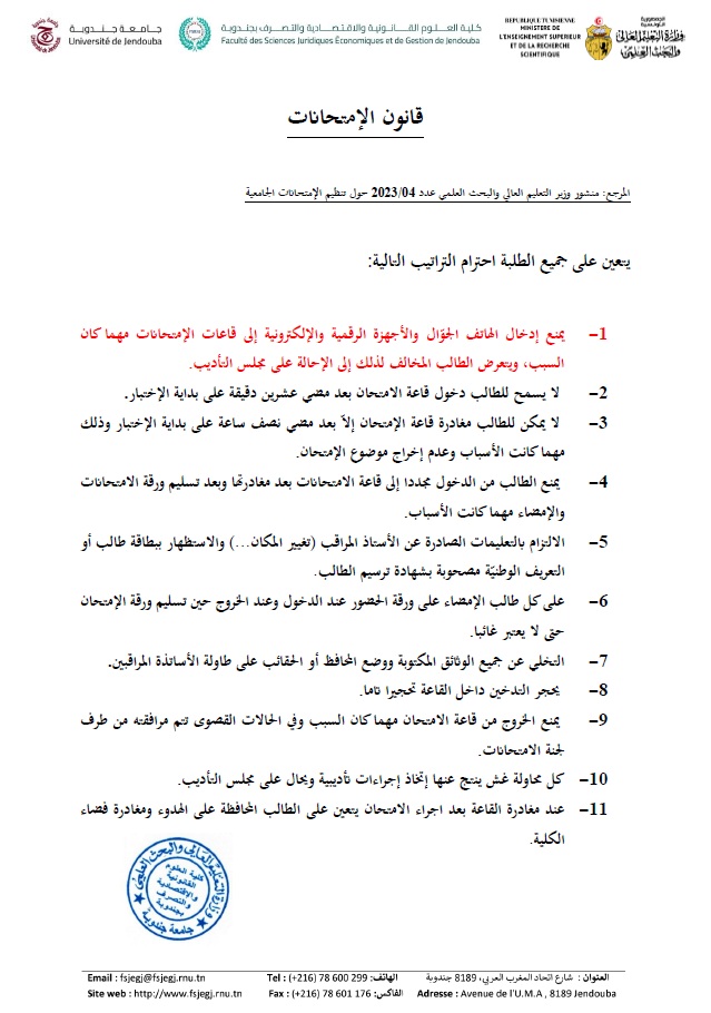 Règlements des examens