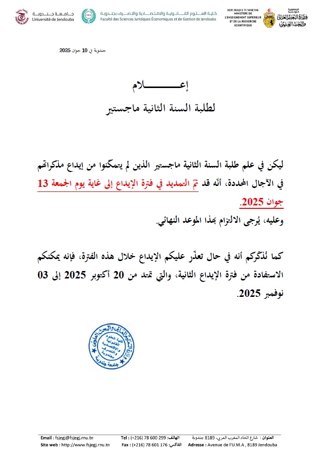 اعلام لطلبة السنة ثانية ماجستير