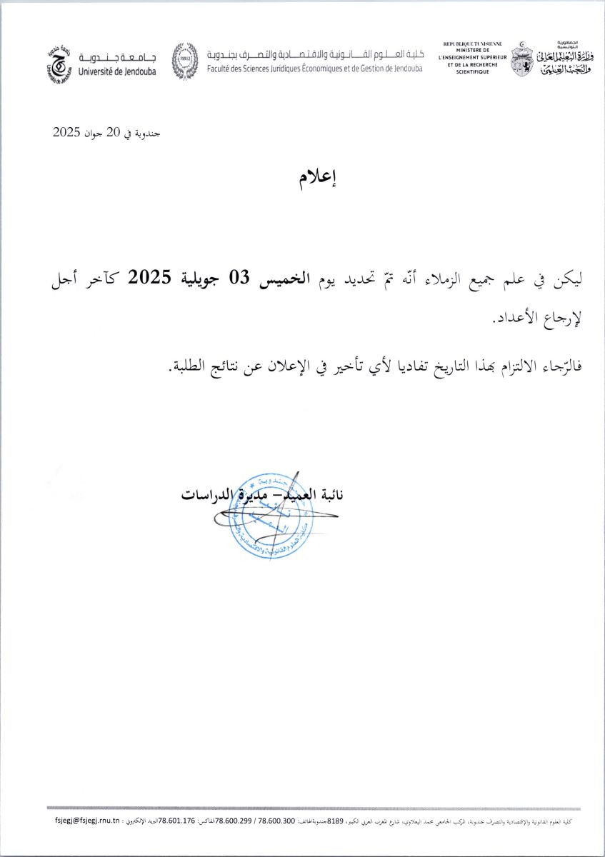 اعلام بخصوص اخر اجل لإرجاع الأعداد